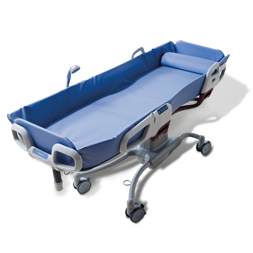 Height-adjustable shower trolleys ensure the best possible working posture for caregivers during resident/patient showering, hair washing and pedicure sessions. ArjoHuntleigh shower trolleys provide a comfortable and dignified hygiene experience for the most dependent residents/patients.
