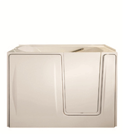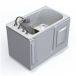"Liberty" walk in water jet and/or air jet tub with wider door and flip up seat for easy access. Model is designed to fit into the space of an existing bath tub or tub/shower unit. This model comes with waste/overflow and safety assist bar.